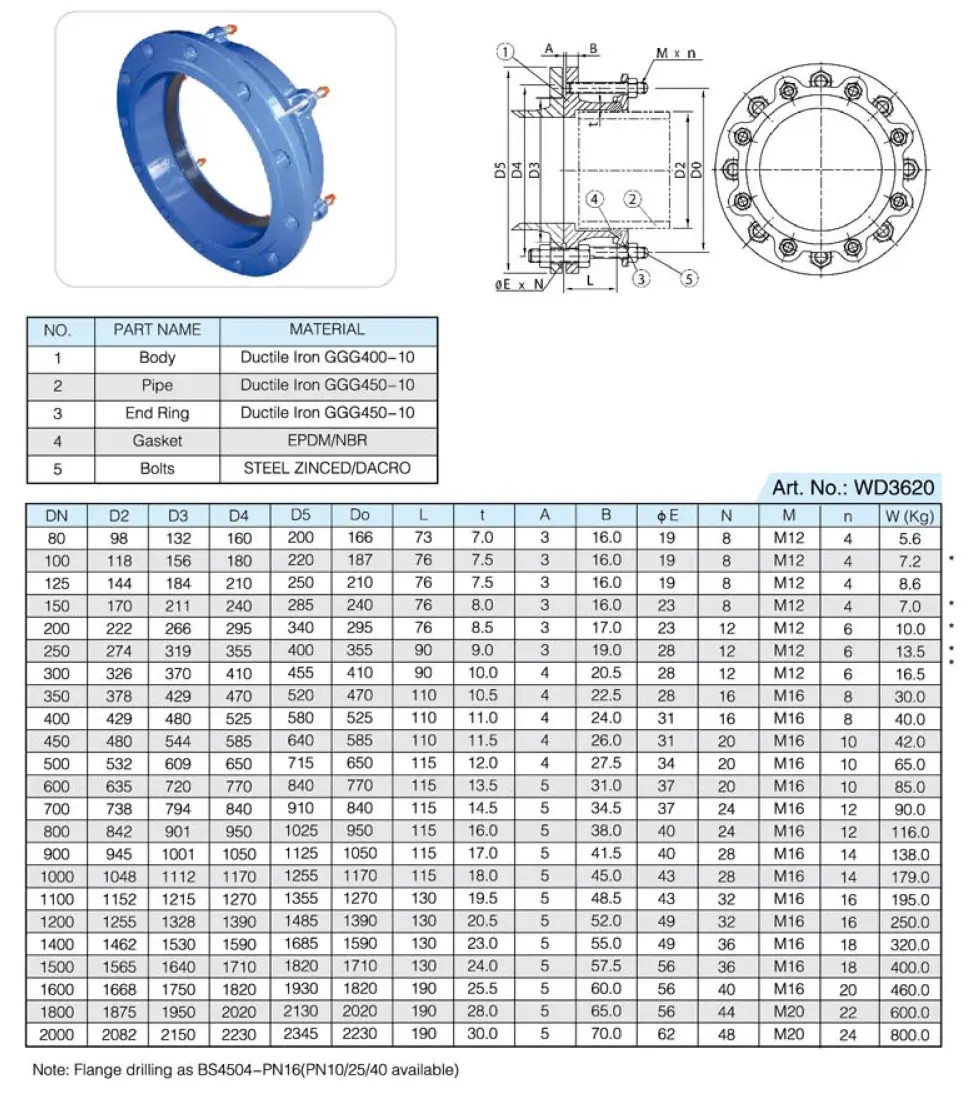 Flange Adaptor for Ductile lron Pipe (Dedicated)