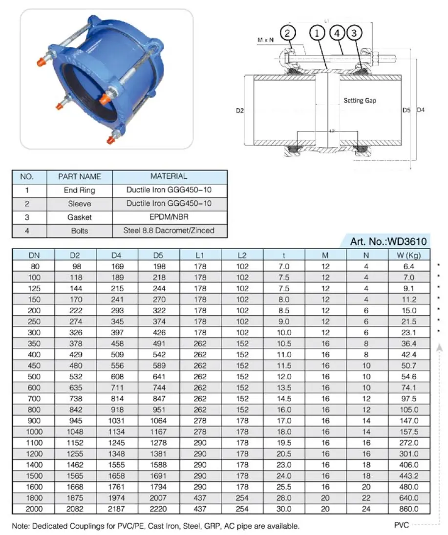 • Flexible Coupling for Ductile Iron Pipe (Dedicated)Flexible Coupling for Ductile Iron Pipe (Dedicated)