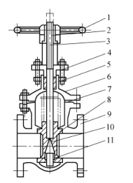 The elastic gate valve is shown in Figure 3. It has the advantages of simple structure and reliable use, and can produce a small elastic deformation, which increases the tightness of closing.